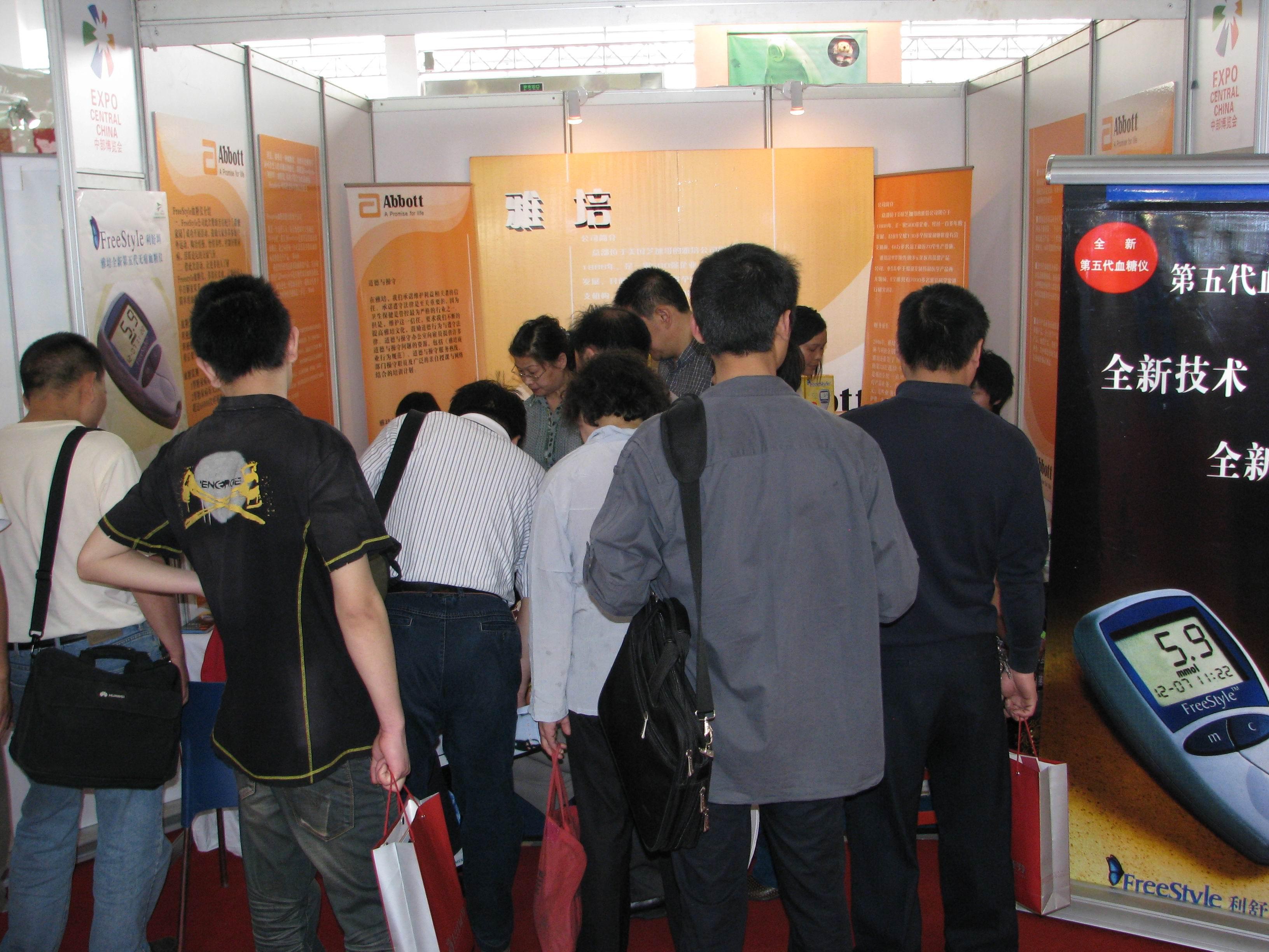 昨日为期三天的第四届中国中部投资贸易博览会落下了帷幕。中部投资博览会是中部地区最盛大的展览会 受到湖北省和武汉市政府的高度重视 可以说是举全省之力来开好这次盛会.据悉,全国有26个省(市、区)、6个副省级城市及香港、澳门特别行政区组团参加本届中博会,王岐山副总理、曾荫权、何厚铧以及中部6省的省长等到会中外客商和来宾10万余人,328家世界500强企业和322家国内500强企业到会。会上,武汉当地电视台对我公司代理的美国雅培血糖仪做了专门报道。