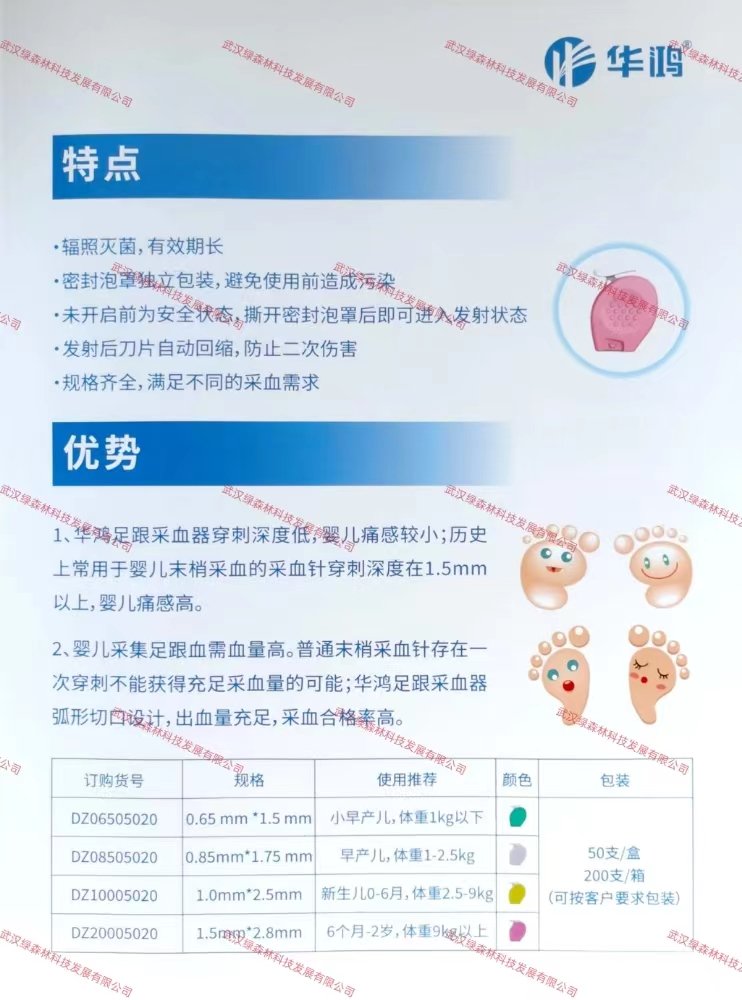 华鸿新生儿无痛足跟采血器Qbutton 弹簧锁卡式 单个独立包装