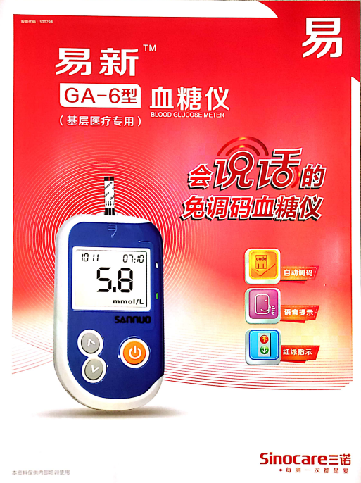 三诺GA-6血糖仪是三诺公司专门为基层卫生机构专门定制的一款“又便宜质量又好”的血糖仪,属于医用血糖仪的范围,药店几乎看不到。